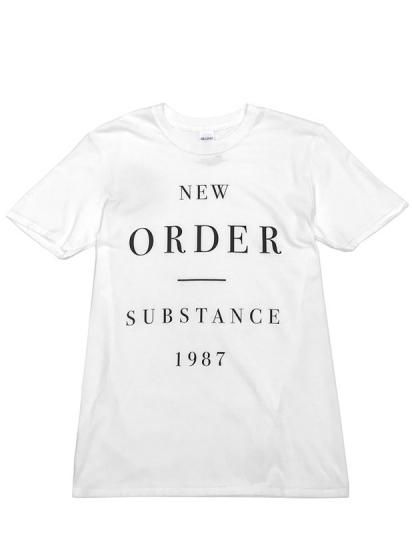 89年にリリースしたベストアルバム"SUBSTANCE"のアルバムアートをプリントしたデザインで、Joy Divisionのアートワークでもおなじみのピーター・サヴィルが手掛けたアート性高い一枚です。(バックは無地です。)