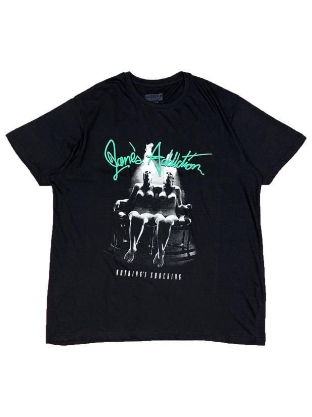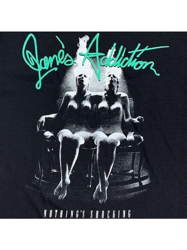 フロントマンのペリー・ファレルが仕上げた肩と腰で繋がった奇形の双子の蝋人形をフィーチャーしたアートワークは物議を醸し、ラッピングしてアートワークを隠したした状態で店頭に並べる店が続出するほど。”NOTHING'S SHOCKING”というタイトルを煽るような過激なアートワークをそのままプリントした1着です。