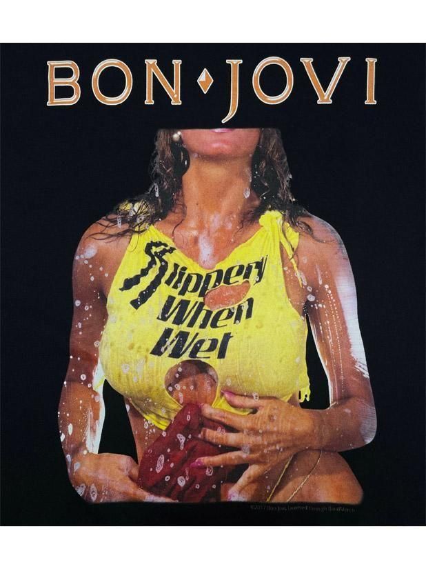 ”YOU GIVE LOVE A BAD NAME””LIVIN ON PRAYER”といった大ヒット曲を収録した「SLIPPERY WHEN WET」のTシャツは、過激すぎる濡れTシャツ姿の女性のフォトを使用して母国アメリカを含む一部地域ではボツになってしまった本来のジャケットデザインをフィーチャーした最高にロックな1着です。