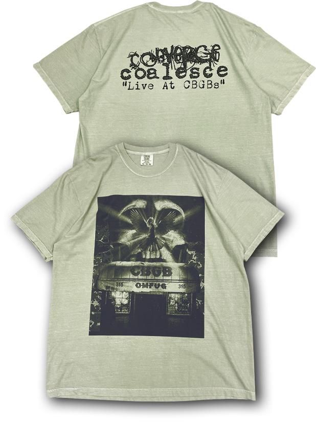 ジェイコブ・バノンがディレクションを手掛けた、CBGBのファサードと鳩、スカルを組み合わせたコラージュアートをフロントに、バックに両バンドのロゴを入れたメモリアルな1着です。