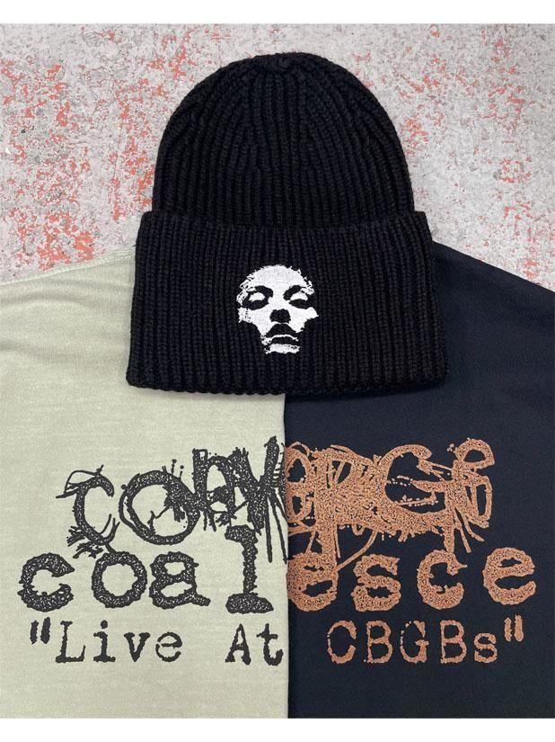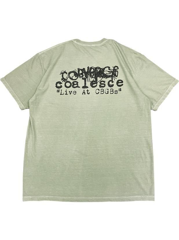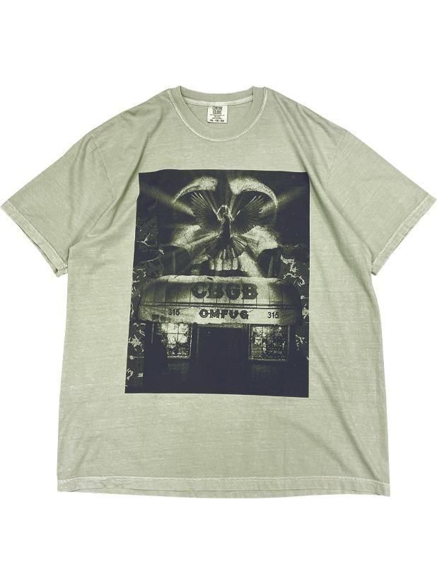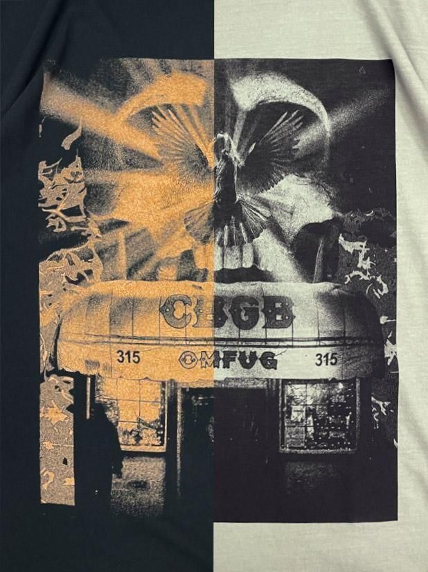 ジェイコブ・バノンがディレクションを手掛けた、CBGBのファサードと鳩、スカルを組み合わせたコラージュアートをフロントに、バックに両バンドのロゴを入れたメモリアルな1着です。